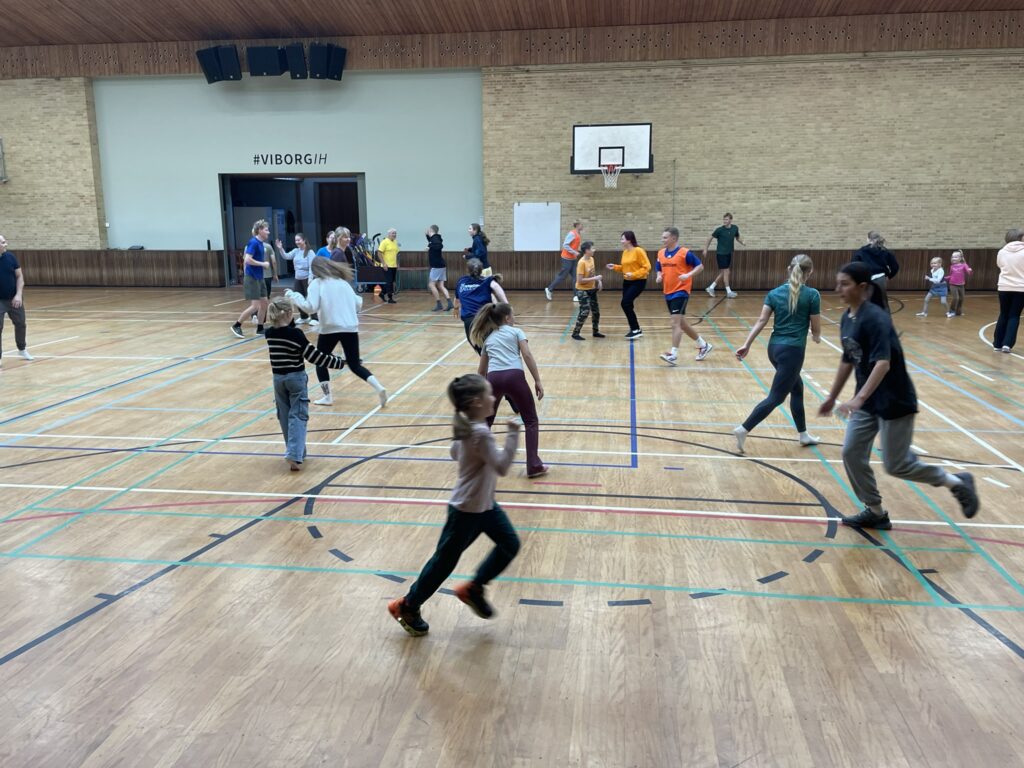 Formiddagen bød på sjov og ballade i idrætshallen, hvor Idrætshøjskolens elever stod for aktiviteterne. De større børn fik mulighed for at prøve kræfter med klatrevæggen, mens de yngre deltog i lege og boldspil. Efter frokost fortsatte programmet, hvor Glad Dans Viborg kom forbi med spillemænd og folkedansere. Her blev både børn og voksne inviteret med på dansegulvet, og dagen sluttede med fællessang.